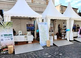 Der Stand der Waldhauptstadt Amt Creuzburg gemeinsam mit dem Wartburgkreis und Bad Salzungen in der Festmeile in Gotha.