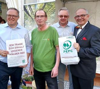 Holten sich beim Rundgang Infos über die Waldhauptstadt aus erster Hand: Ministerpräsident Mario Voigt, Stadtrat Lutz Kromke, Bürgermeister Rainer Lämmerhirt und Oberbürgermeister Knut Kreuch.