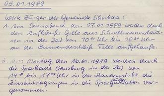 Ortsfunk-Durchsage vom 5. Januar 1989