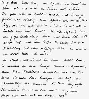 Brief der Dipl.-Restauratorin Angelika Porst an das Pfarramt Creuzburg vom 21. August 1989 (Auszug). Frau Porst studierte in Potsdam und Dresden, arbeitete zeitweise beim VEB Denkmalpflege Erfurt und machte sich 1988 selbständig. Sie ließ sich 1989 im süddeutschen Raum nieder, wirkte an bedeutenden Objekten wie dem Passauer Dom und dem Augsburger Dom und ist noch heute als Restauratorin in München tätig[8]