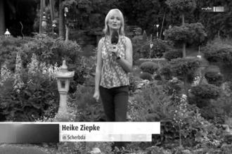 MDR-Moderatorin Heike Ziepke im Garten der Familie Aßmann in der Lindenstraße.