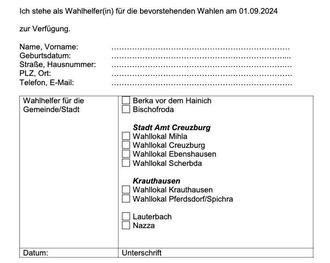 Die Verwaltungsgemeinschaft Hainich-Werratal sucht für ihre Mitgliedsgemeinden und deren Wahllokale für diese Tage engagierte Bürger als Wahlhelfer.