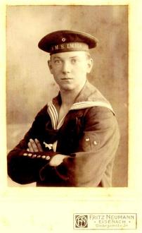 Mit 18 Jahren trat er in die Kaiserliche Marine ein. Er diente auf dem Auslandskreuzer "Emden". Mit diesem Schiff nahm er an mehreren Auslandsreisen teil. Mehrere Briefe haben sich aus dieser Zeit erhalten.