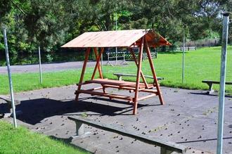 Die erste der drei neubeschafften Sitzgruppen steht bereits.