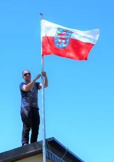 Die Fahne konnte auch wieder am Fahnenmast über dem Dach des Sozialgebäudes aufgezogen werden.