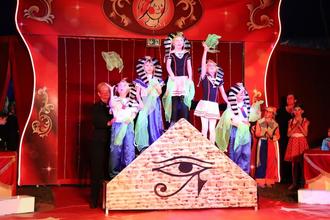 Akrobatik unter den Pyramiden war zu erleben.