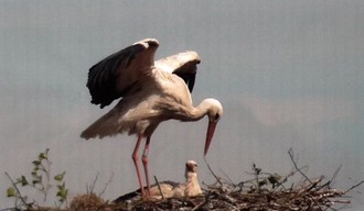 Vor einem Jahr hat ein neues Storchenpaar unser Nest bezogen und kleine Störche ausgebrütet. Leider wurden die kleinen Störche vermutlich Opfer von Raubvögeln.