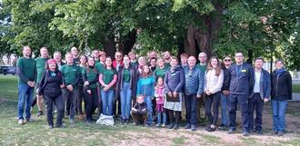 Nach dem Rundgang der Landesjury in Ebenshausen im Entscheid über die nächste Stufe des Landeswettbewerbs „Unser Dorf hat Zukunft“ versammelten sich alle Beteiligten, Jurymitglieder, die Ebenshäuser Akteure mit Ortsteilbürgermeister Jan Werneburg, Bürgermeister Rainer Lämmerhirt sowie den Helfern auch aus anderen Ortsteilen, so Uwe Nowatzky, der zum Thema Preisackern Aussagen machte und darüber berichtete, zu einem gemeinsamen Abschlussfoto auf dem Anger.