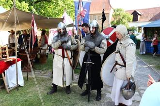 Ritter verschiedener Orden und Brüderschaften hatten sich zusammengefunden. Sie stellten historische Kampfszenen dar und wirkten als Marktwache.