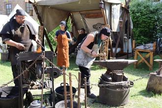Dicht umlagert waren die mittelalterlichen Handwerkerstände wie diese Schmiede, bei der man auch selbst Hand anlegen konnte.