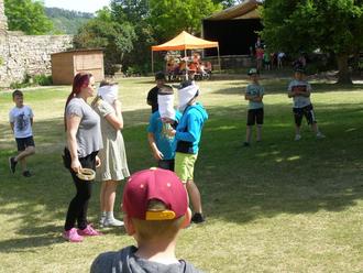 Zum Abschluss hatte die Burgküche um Kai Wallor ein leckeres Mittagessen gezaubert - natürlich Nudeln mit Tomatensoße. Unter den schattigen Bäumen im Burghof schmeckte es da besonders gut, was den Tag so herrlich abrundete.