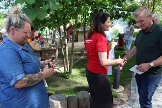 Dann zerschnitt Ortsteilbürgermeister Ronny Schwanz, der sich persönlich um den Spielplatz gekümmert hatte, gemeinsam mit Kitaleiterin Yvonne Zilian das Eröffnungsband. Und dann ging es los, ein bunter Nachmittag mit vielen Überraschungen, Gebratenem, Eis, Spiele und eben endlich der neue Spielplatz.