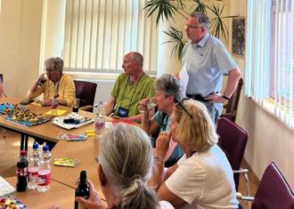 Begrüßung im Mihlaer Rathaus. Bei einem Imbiss informiert Bürgermeister Rainer Lämmerhirt die Gäste über den Forschungsstand zu den Ereignissen am 4. April 1945.