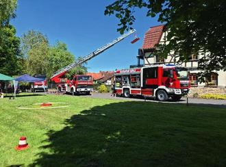 Die Wehren aus Mihla und Creuzburg kamen mit einem Teil ihres Fuhrparks zu uns und präsentierten gekonnt die modernen Fahrzeuge. An dieser Stelle noch einmal ein Dankeschön für die Bereitstellung der Technik.
