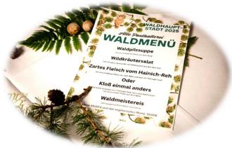 In der „Posthalterei“ im OT Creuzburg wird nun auf der Speisekarte ein „Waldmenü“ angeboten. Das beinhaltet eine Waldpilzsuppe und schwängt über einen speziellen Waldsalat über einen Rehbraten bis zum Waldmeistereis.