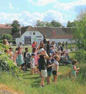 Großer Zuschauerauflauf am Mihlaer Storchennest.