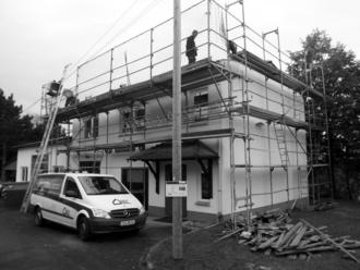 Firma Dachbau Krieg aus Eisenach bei der Erneuerung des Feuerwehrhausdaches.