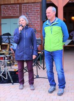 Ortrun Raasch und Gunnar Köhler. Die Kinder von Sportlehrer Köhler, beide ebenfalls als Lehrer unterwegs, bedanken sich bei den Mihlaern und deren Helfern.