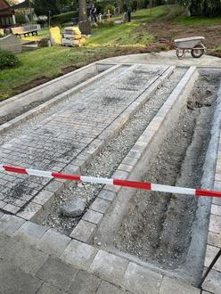Am 07.05.2025 in der Gemeinderatssitzung in Ütteroda hat der Gemeinderat den Bau einer neuen Urnengrabgemeinschaftsanlage auf dem Friedhof in Krauthausen an eine Fachfirma vergeben. Die Baumaßnahmen haben in der Woche vom 10. Juni 2025 begonnen und sind sehr gut vorangeschritten. Die ausführende Firma arbeitet in einem sehr guten Qualitätsmaßstab.