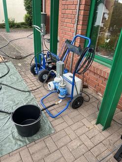 Ebenfalls wurden die Arbeiten für die Sanierung im DGH Krauthausen durch eine Spezialtiefbaufirma für die Grundsanierung mittels Niederdruckinjektion beauftragt. Die Firma hat Anfang der 24. Kalenderwoche mit den Arbeiten im Außen- und Innenbereich begonnen. Auch diese Arbeiten schreiten gut voran.