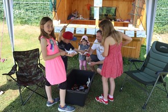 Vom Torschießen über Schminken, Judo, Kirmesartikel selbst herstellen oder in eine Kinderuniform schlüpfen bis zum Angeln und dabei auch noch die geangelten Fische näher kennenlernen bis zum Bogenschießen, Kegeln und Reitübungen, alles war dabei. Zudem sorgte eine große Hüpfburg für viel Spaß bei den Kindern. Musikschule, Karnevalsverein und die Kitas stellten ihre Programme vor, Kaffee und Kuchen und natürlich der obligatorische Grill mit seinen Spezialitäten durften auch nicht fehlen.
