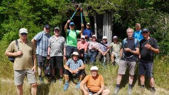 unsere letzte MP sollte genutzt werde, um auf dem von uns zu begehenden Weg, einmal nach dem Rechten zu schauen. Trotz angesagter hochsommerlicher Temperaturen, fanden sich 15 Herren am Treffpunkt ein. Alle hatten sich mit diversem Handgerät zur Baumpflege bewaffnet, um unterwegs störende Zweiglein oder auch Äste zu entfernen. Aber der von uns gewählte Weg war sehr freundlich zu uns, brauchten wir doch unsere mitgeführten Werkzeuge gar nicht zu benutzen.