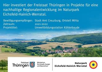 Anlässlich der Einweihung der Köhlerbaude im Mihlaer Tal wurde durch Sabine Pönicke von der Verwaltung des Naturparkes Eichsfeld-Hainich-Werratal an Bürgermeister Rainer Lämmerhirt die Förderplakette vom Thüringer Ministerium für Umwelt, Energie und Naturschutz überreicht. Sie wird ihren Platz in der Baude erhalten wird, so der Bürgermeister.