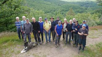 Weiter ging es dann zur „Hochwaldgrotte“, welche wir über den „Felsenpfad“ erreichten. Auch hier ausgiebige Begutachtung. Dann wurde es wieder spannend. Auf steilem Pfad wurde der „Hirschstein“ angelaufen, ein schöner Aussichtspunkt auf Wilhelmstal und der höchste Punkt unserer Wanderung. Hier wieder eine ausgiebige Pause incl. Gruppenfoto und Bereitschaftserklärung unseres Wanderführers Erich, für eine weitere Wanderung um die Wartburg.