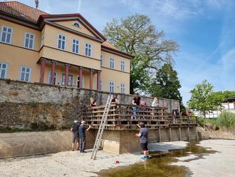 Unsere Dorfmitte glänzt nun wieder mit einem sauberen Schlossteich und einem frisch gestrichenen Steg.