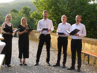 Das Leipziger Vokalsextett „voicemade“ präsentierte am Freitagabend in einem bunt gemischten sommerlichen Programm die berauschende Vielfalt der a Capella Musik. Dass dabei vom Sextett die erkrankte Lili Hein fehlte, schmälerte das tolle Klangerlebnis keineswegs. Ihr Studium in Leipzig und insbesondere die Begeisterung für A-Capella-Musik hatte die jungen Sängerinnen und Sänger 2017 zusammengeführt. Dabei waren sie nicht einmal durchweg Musikstudenten, studierten eher 'Musik auf Lehramt' auch 'internationale Beziehungen' oder 'Volkswirtschaft'. Inzwischen sind sie berufsbedingt deutschlandweit verstreut, gehen ihrer Leidenschaft aber weiterhin gerne nach und treffen sich zu Proben und aktuell etwa 25-30 Konzerten im Jahr. Über Pfingsten weilten sie sogar zu drei Konzerten in Italien und demnächst steht Den Haag (Holland) auf dem Programm.