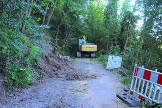 Daher wird nun mit schwerer Technik am Weg gearbeitet.