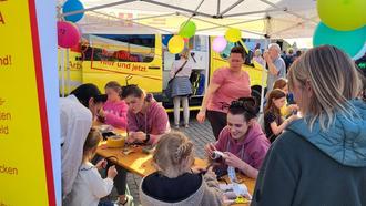 Wir, das Teams des ASB ThEKiZ Kindergartens „Cuxhofwichtel“ legten unser Augenmerk speziell auf das Basteln von Spinnen-Haarreifen und Ausmalbilder mit allerhand Krabbeltieren. Die Spinne, welche ja nicht immer einen guten Ruf hat, war das Aushängeschild der diesjährigen KiKuNa. Überall auf dem Marktplatz und im Innenstadtbereich von Eisenach waren die achtbeinigen Insekten zu finden. Unsere Angebote fanden regen Zuspruch und unsere PädagogInnen hatten alle Hände voll zu tun. Schon bald war das Material aufgebraucht.