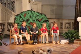 Kennen Sie den Klangfresser? Nein? Sie hätten ihn erleben können zum Sommerstück der Kinder der Mihlaer Kita „St. Martin“. Da war er nämlich unterwegs, in der gut gefüllten Kirche.