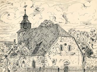 Federzeichnung der Scherbdaer Kirche aus dem Jahr 1946.