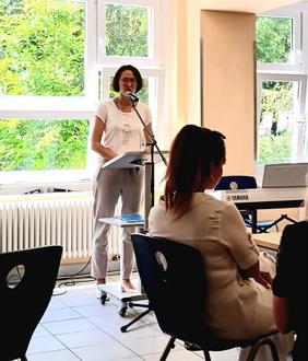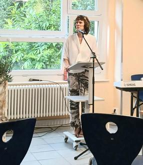 Martina Dubiel bei ihrer Rede zur Verabschiedung von Ingrid Nickol