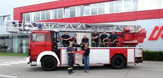Die 2018 durch die Gemeinde Mihla beschaffte gebrauchte Drehleiter ist inzwischen 32 Jahre alt. Hier die damalige Übergabe an die Wehr in Ulm.