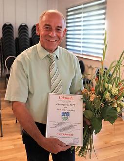 Daher war der Anlass der Einladung die Verleihung des Ehrenpreises der Stadt Amt Creuzburg an Uwe Schwanz. Der Hauptausschuss des Stadtrates hatte dies auf seiner Sitzung einstimmig beschlossen.