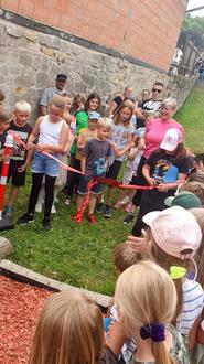 Die größte Überraschung des Schulfestes war für alle Beteiligten die offizielle Eröffnung des neuen Barfußpfades, der neu im grünen Klassenzimmer der Grundschule Creuzburg angelegt wurde. Ein erster Testlauf zum Ausprobieren war natürlich inbegriffen & zauberte viele Lächeln in die Gesichter der Kinder.