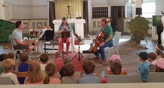 Am 27.06. kamen wir aus dem Staunen nicht mehr heraus. Wir bekamen Besuch von einem Ensemble der Thüringer Philharmonie Gotha-Eisenach. Wir konnten dabei nicht nur die tollen Klänge der Instrumente erleben, sondern durften diese auch hautnah kennenlernen und selbst ausprobieren. Hierbei lernten wir eine Oboe, eine Klarinette und ein Cello kennen. Die Musiker zeigten und beschrieben uns genau wie diese Instrumente sich anhören und funktionieren. Wir bedanken uns recht herzlich bei Stefan Happ, Andreas Gruner und Ulrike Gruner für diesen tollen Vormittag.