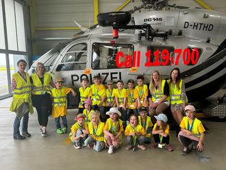 Dann geht’s dorthin, wo eigentlich keiner hindarf, aufs Rollfeld. Mit einem Bus fahren wir über das gesamte Außengelände des Flughafens und bekommen alles genauestens erklärt. Unser Highlight war aber eindeutig als uns der Polizeihubschrauber und das Feuerwehrauto gezeigt wurde. Dieses konnte leider nur aus dem Bus beobachtet werden, weil es so schlimm geregnet hat. Die Feuerwehrmänner zeigten uns wie weit der Wasserstrahl spritzen kann. Alle Kinder waren fasziniert davon. Nachdem die Führung über den Flughafen vorbei war, ging es für alle ins Flughafen-Café zur Stärkung. Mit der Straßenbahn zurück, gab es am Bahnhof noch ein Eis für alle.