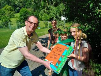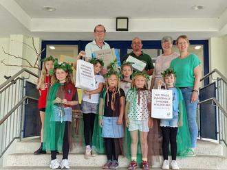 Die Grundschulen der Waldhauptstadt Creuzburg und Nazza übergeben mit ihren Waldelfen Bilder für den Malwettbewerb
