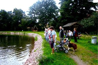 Weiter ging es zu unserem Teich. Hier wurden die großen Karpfen bewundert und gefüttert.