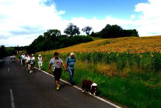 Vorbei am Weinberg, entlang des blühenden Sonnenblumen- feldes, ging es dann um den Hasenberg zum DGH.
