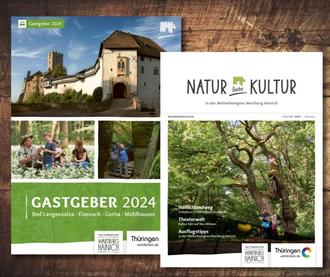 Sowohl das Gastgeberverzeichnis als auch das Erlebnismagazin kann online auf der Website www.kultur-liebt-natur.de gelesen und heruntergeladen werden. Gedruckte Exemplare, aus nachhaltig hergestelltem Naturpapier, können telefonisch oder per E-Mail über die Geschäftsstelle des Welterberegion Wartburg Hainich e.V. bezogen werden. Zudem werden beide Hefte über den mobilen Prospektservice, dem „Infomobil“ der Region auf neun Touren an über 350 Institutionen wie Ausflugsziele, Tourist Informationen und touristische Knotenpunkte in Thüringen und angrenzenden Bundesländern verteilt. Gleich zum Start des neuen Jahres konnten Besucherinnen und Besucher, auf der Fahrrad- und WanderReisen am 1. Wochenende der CMT Urlaubs-Messe, vom 13. bis 15. Januar 2024, in Stuttgart in die neuen Welterbe-Broschüren reinlesen und ihren Urlaub in der Welterberegion Wartburg Hainich planen.