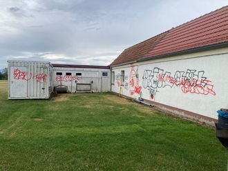 Am Sportplatz in Ütteroda wurden kürzlich unerlaubte Farbmarkierungen an der Gebäudefassade entdeckt.