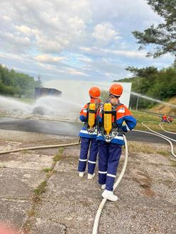 Am 21.07.2023 war es nun endlich soweit: 24 Stunden Dauereinsatz bei der Feuerwehr standen auf dem Programm. Von Freitag, 17 Uhr bis Samstag, 17 Uhr wurde die Feuerwache in Mihla von den Nachwuchsrettern, genauer gesagt den 10 bis 18-Jährigen der Jugendfeuerwehr Mihla, besetzt. In dieser Zeit standen neben simulierten Einsätzen und Arbeitsdienst auch das gemeinsame Zubereiten und Einnehmen von Mahlzeiten, Übernachtung im Gerätehaus sowie Spaß und Kameradschaft auf dem Plan. Nach der Ankunft in der Feuerwache suchte sich zunächst jeder einen Platz, wo er sein Nachtlager einrichtete. Gleich im Anschluss kam der „Klamottencheck“, denn Sicherheit geht vor. Jeder schaute, ob er noch passende und einsatzbereite Kleidung hatte und legte sie bereit. Als alles vorbereitet war, gab es eine kleine Eröffnung im Jugendraum durch den Jugendwart und das Betreuerteam. Es wurden noch einmal alle wichtigen Regeln und ein grober Ablauf besprochen. Das Meiste blieb allerdings offen und die Jugendlichen erfuhren nur grob, welche Art von Einsätzen sie erwartet. Auch das richtige Verhalten, wenn es zu einem Einsatz der Einsatzabteilung kommt, wurde durchgesprochen. Dann ging es in die Fahrzeughalle, um sich noch einmal mit den Einsatzfahrzeugen vertraut zu machen und die Besatzung der Fahrzeuge festzulegen. Wie es der Zufall will, ging währenddessen der erste Alarm ein. Die Betreuer schauten sich verdutzt an. So war das aber nicht abgesprochen. Leitstellendisponent und Kamerad Lars sollte doch erst in 10 Minuten das erste Mal alarmieren. So starteten wir unseren „24 h Dienst“ tatsächlich mit einem richtigen Alarm. Da genügend andere Einsatzkräfte eintrafen, konnten alle Jugendbetreuer im Gerätehaus bleiben. Bei dem „echten Einsatz“ handelte es sich um eine Tragehilfe, weshalb auch das HLF nicht zwingend benötigt wurde. So starteten wir 5 min später auch mit der 1. Alarmierung für die Jugendabteilung: Unklare Rauchentwicklung, Klosterstraße in Creuzburg. Dort angekommen brannte zum Glück nur der Grill und die Feuerwehr Creuzburg hielt ein paar leckere Bratwürste und Getränke für uns bereit. An dieser Stelle ein herzliches Dankeschön für die Verpflegung. Nach der Stärkung, ein paar netten Gesprächen sowie der Zusammenkunft mit der Creuzburger Jugendfeuerwehr kam die 2. Alarmierung: Wohnhausbrand Buchenau. So machten sich beide Jugendabteilungen gemeinsam auf den Weg nach Buchenau. Schon von der Werrabrücke aus war Rauch zu sehen. Es schien richtig zu brennen. In Buchenau angekommen, sahen wir ein kleines Holzhaus im Vollbrand. Schnell war von beiden Jugendabteilungen eine Wasserversorgung aufgebaut. Zunächst wurde nicht gleich gelöscht, sondern erstmals die umliegenden Gebäude, in dem Fall ein Container, gekühlt. Später wurden dann auch noch die Reste des Holzhauses abgelöscht. Auch die Drehleiter der FF Mihla sowie die Drohne der FF Creuzburg kamen zum Einsatz. Alles klappte reibungslos und man konnte eine tolle Zusammenarbeit beider Nachwuchswehren beobachten. Bei diesem Einsatz kamen erstmal auch die selbstgebauten Atemschutzgeräte für die Jugendlichen zum Einsatz. Nach einem gemeinsamen Foto durch die Drohne, ging es dann für beide Wehren wieder an ihre Standorte zurück. Wir sagen an dieser Stelle herzlich Danke an die Feuerwehr Creuzburg für ihre Unterstützung und die gelungene Zusammenarbeit. Trotz Einbruch der Dunkelheit waren die Kids noch nicht müde und schon gespannt auf den nächsten Einsatz. Zurück im Gerätehaus gab es noch etwas Freizeit und dann hieß es aber erstmal Zähne putzen und Nachtruhe. Als dann Ruhe eingekehrt war, folgte kurz vor Mitternacht die 3. Alarmierung. Die Freude war groß, Ölspur und das um diese Zeit. Ein Fahrzeug hatte auf der Straße in der Nähe des Schwimmbades eine Ölspur hinterlassen und so hieß es nachts: Licht aufbauen, Öl aufnehmen und Besen schwingen. Wir hoffen, die Angler haben, trotz der nächtlichen Störung, noch einen Fisch gefangen. Wieder zurück, ging es dann aber schnell ins Bett, um wenigstens noch ein paar Stunden Schlaf zu bekommen. Am nächsten Tag standen dann weitere Einsätze bevor. Noch vor dem Aufstehen kam die 4. Alarmierung: Ofenbrand, Bäckerei Eichholz. Wir konnten zum Glück noch ein paar Brötchen retten und bedanken uns herzlich für die Spende von Brötchen, Paniermehl und Rührkuchen. Nach dem Frühstück begann der Arbeitsdienst und nun hieß es Schläuche waschen, Fahrzeuge putzen und erste Vorbereitungen für das Mittagessen treffen. Doch da kam auch schon die 5. Alarmierung: Verkehrsunfall mit eingeschlossener Person. Am Bahnhof erwartete uns ein verunfalltes Fahrzeug mit einer verletzten Person. Gemeinsam mit dem Rettungsdienst wurde die schonende Rettung der Person aus dem Auto durchgeführt. Danke für die Einsatzbereitschaft an das Rettungsteam unserer Kameraden Luca und Sebastian, die mit dem RTW des ASB vor Ort waren. Nach dem Einsatz wurde die Zeit knapp, um das Mittagessen rechtzeitig auf den Tisch zu bekommen. Ein Teil der Jugendlichen machte das Einsatzfahrzeug wieder fit und in der Küche wurde mit vereinten Kräften geschnippelt, Jägerschnitzel paniert, Nudeln gekocht und Feuerwehrsoße gerührt. Pünktlich stand dann ein leckeres und selbst zubereitetes Essen auf dem Tisch. Alle freuten sich im Anschluss auf den Mittagsschlaf. Doch da kam schon die 6. Alarmierung: Tierrettung mit DLK, Alte Ziegelei und kurze Zeit später die 7. Alarmierung: vermisste Person in Gebäude, Am Bahnhof. An dieser Stelle bedanken wir uns bei der Gemeinde Mihla sowie Hans Christian Duscha, dass wir die leerstehenden Gebäude der alten Ziegelei sowie das ehemalige LPG-Gebäude „Am Bahnhof“ für unsere simulierten Einsätze nutzen konnten. Im Anschluss an den 7. Einsatz gab es dann noch Kuchen und Kakao für die Kids. Der Kaffee für die Betreuer wurde zum Glück nicht kalt, denn die letzte Alarmierung während der gemeinsamen Kaffeezeit war nur ein Fehlalarm und alle Jugendlichen durfte