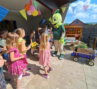 Zum Zuckertütenfest am 28.06.2024 überraschte das Maskottchen alle Schlossmäuse mit einem Besuch und brachte sogar Zuckertüten mit.