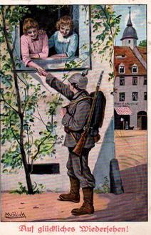 Auch in Mihla wurde diese Postkarte zum Abschied der Männer in den Krieg verschickt, für viele gab es jedoch kein Wiedersehen ... Aus Mihla fielen bis 1918 71 Männer.