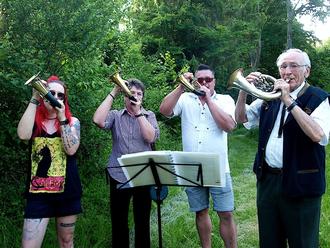 Trotzdem an diesem Wochenende an allen Orten der Region Veranstaltungen angeboten wurden, hatten sich doch sehr viele interessierte Besucher eingefunden. Kameraden der Lauterbacher Feuerwehr organisierten das reibungslose Einparken der Autos am Wiesenhang. Mit dem Klang von Jagdhörnern, es spielte die Bläsergruppe „Werra-Bergland“ unter Leitung von Werner Hunstock und Waldmusik der Jugendband „Echt einmalig“ unter Regie von Ricarda Kappauf wurde die Veranstaltung musikalisch umrahmt.