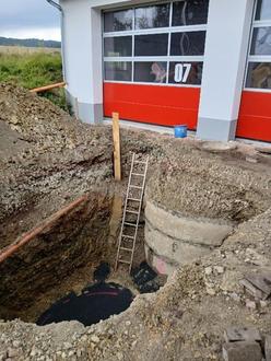Gearbeitet wird am Bau einer neuen Zisterne.